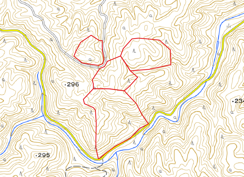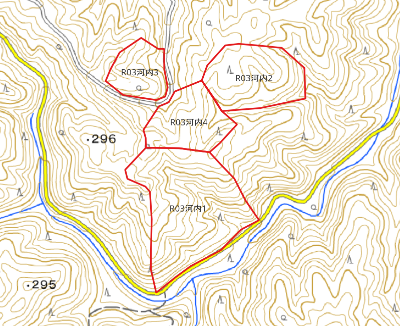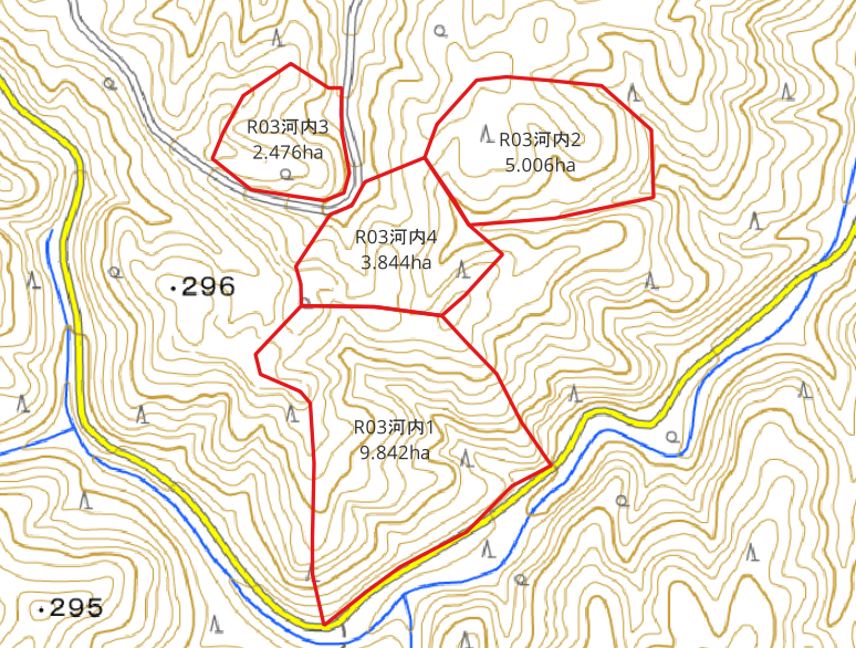 今度は山林所有者ごとに地物の色を塗り分けをしてみましょう。
