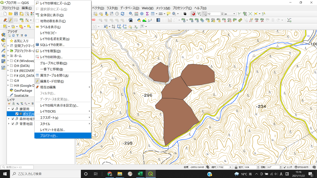レイヤを右クリックしてプロパティを選択します。